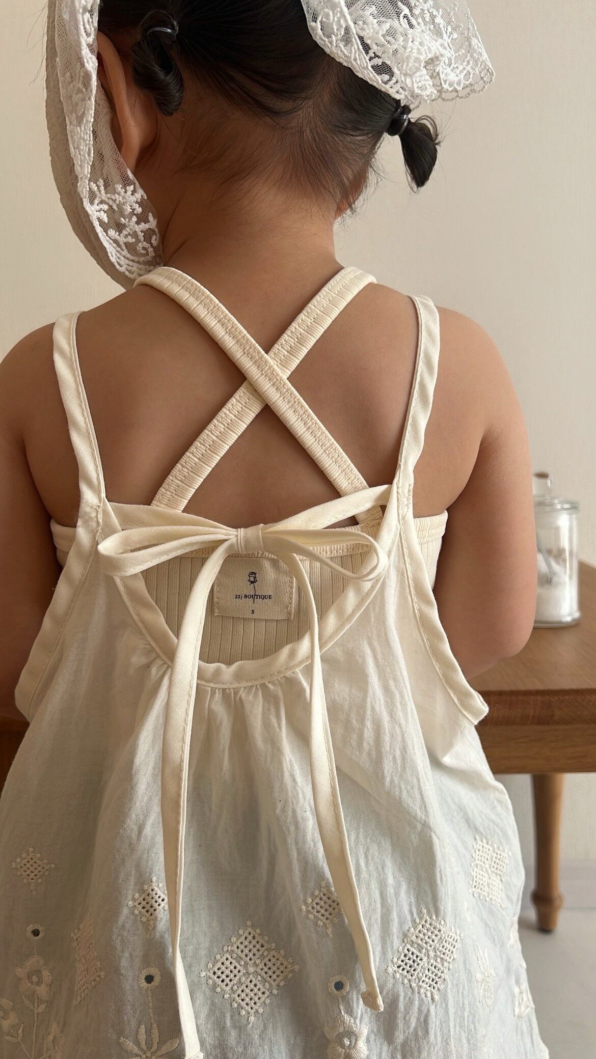 【kids】back cross cami set (cream)